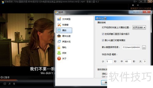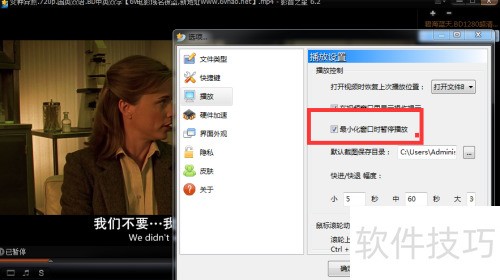 将影音之星设为最小化时暂停播放很方便。