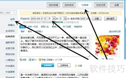 4、 可从内容库选取心仪,设定时间自动发布。
