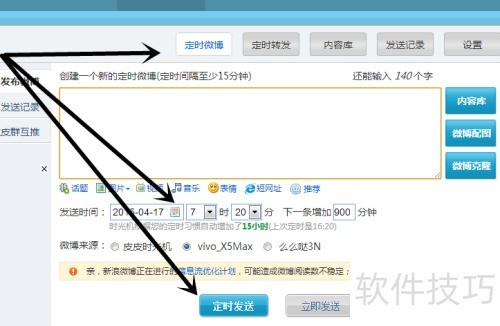 3、 设置发布时间和来源,到时自动发送即可。
