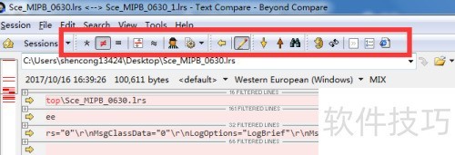 4、 对比分析文件Sce_MIPB_0630_1.lrs内容差异