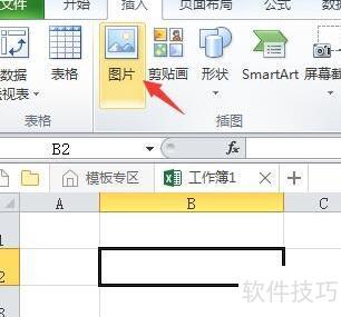 打开Excel 2010,选择插入选项卡中的图片功能。