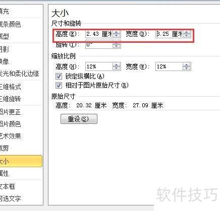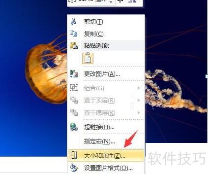 右键点击图片,选择大小和属性选项。