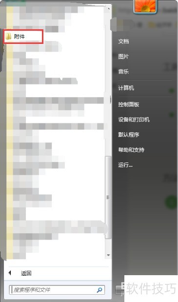 3、 打开开始菜单,进入附件并启动。