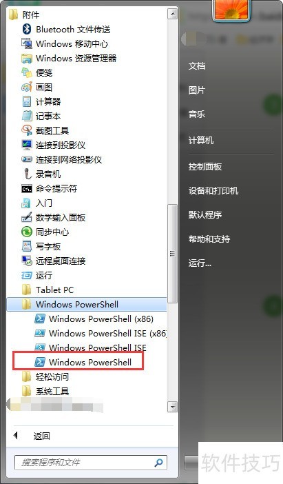 4、 打开附件中的windows powershell文件夹即可。