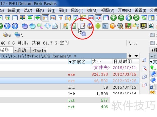 14、 在Total Commander中,按Ctrl+B可显示目录内所有文件,再按Ctrl+A全选,随后通过鼠标拖拽即可批量修改文件名,轻松实现APK文件的批量重命名操作。