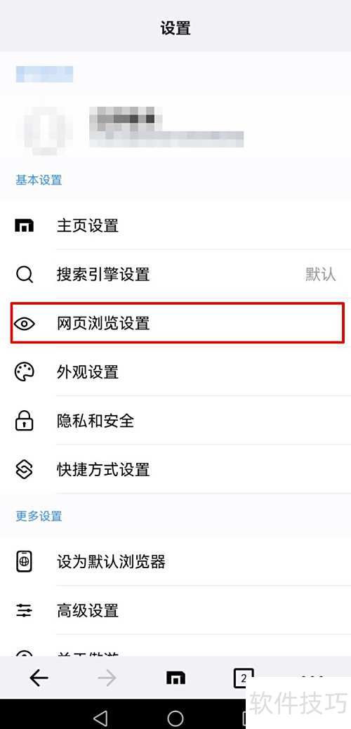 3、 进入设置,选择网页浏览选项进行配置。