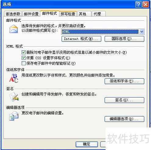 2、 在弹出窗口中选择邮件格式标签页