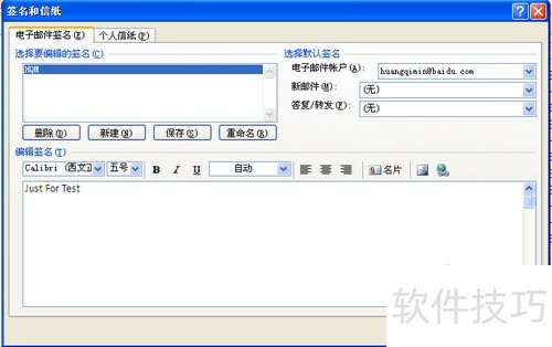 5、 选择需修改的签名名称,在编辑框内输入新内容,确认无误后点击确定完成设置。