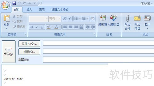 6、 新建邮件时,收件人栏已自动填入Just For Test。