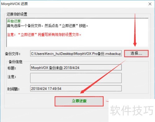 7、 介绍了morphvox变音大师备份与恢复设置的操作方法,需要的用户可自行尝试,轻松完成配置的保存与还原,方便实用。