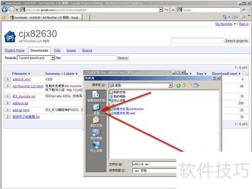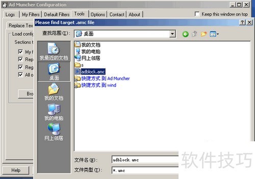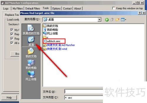 16、 打开文件读取窗口,进入桌面,选中并点击adblock.amc文件。
