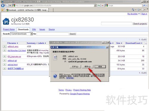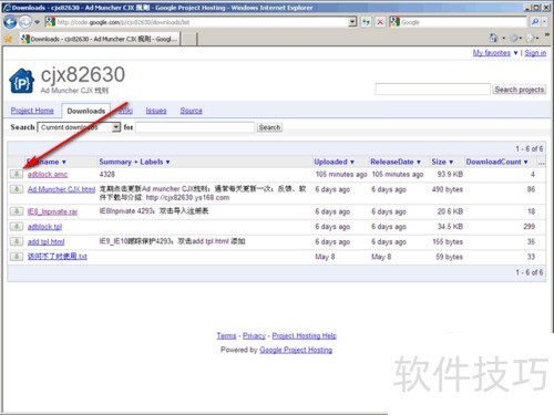 9、 前往谷歌空间 http://code.google.com/p/cjx82630/downloads/list,下载由爱好者根据国内网络环境定制的CJX规则文件,然后点击页面上箭头指示的图标即可完成获取。