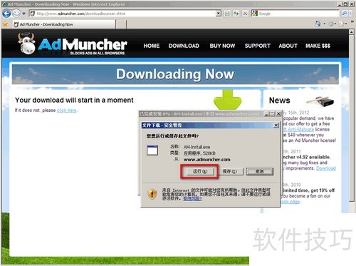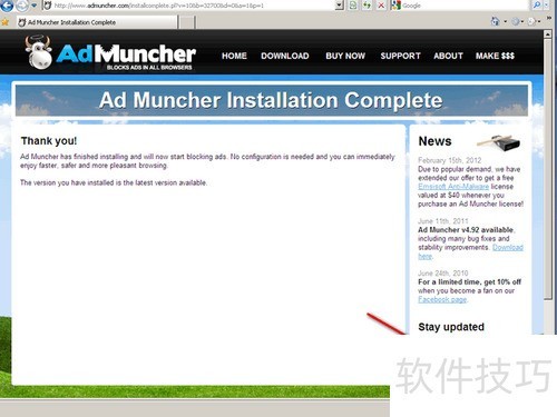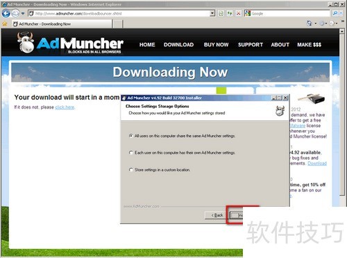 1、 前往官网 http://www.admuncher.com/download.shtml,点击红色区域下载 Ad Muncher v4.92 正式版本。由于最新测试版与 PPTV 存在兼容问题,不推荐使用,建议选择稳定发布的正式版以确保正常使用,避免播放软件运行异常。