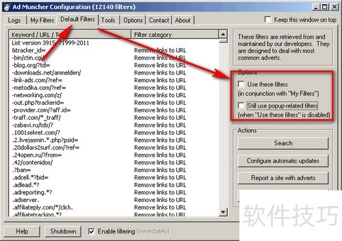 20、 再次点击任务栏牛头图标,进入菜单栏选择默认过滤,取消勾选相关选项。关闭官方规则,因其主要针对西方用户,与国内实际情况不符。