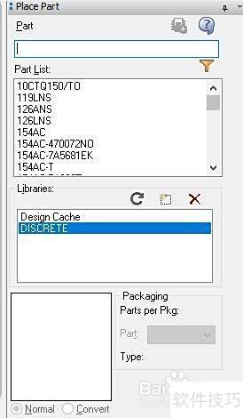 3、 此时封装对话框将显示包含众多封装元件类型的Part list列表。