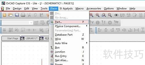 1、 打开dsn文件后,在CIS编辑栏选择place-part或按P键,即可调出元件封装库。