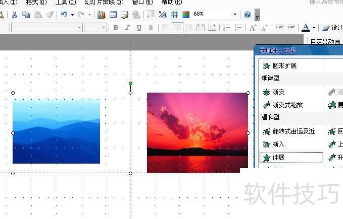 点击添加效果,选择所需动画并确认,播放PPT时即可看到两张图片同步动态呈现。