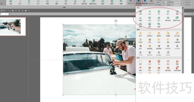 长按图片,进入菜单栏选择动画功能,点击插入动画,设定图片的入场效果,即图片显示的呈现方式。