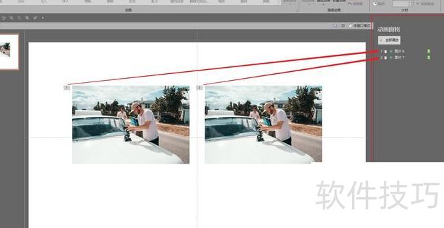 点击动画窗格后,右侧会显示相应列表,每添加一个动画就增加一行,图片左上角的数字与动画前的序号一一对应。