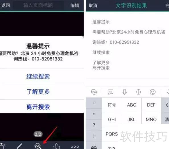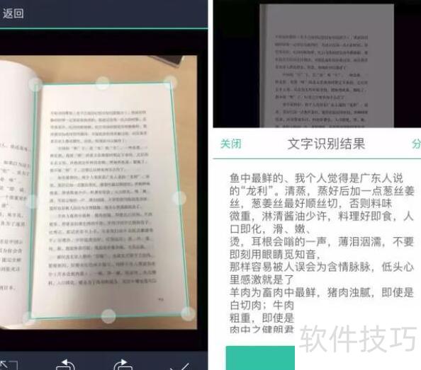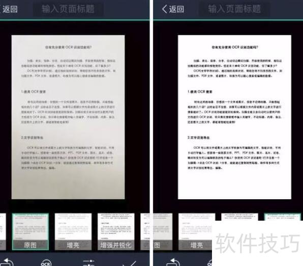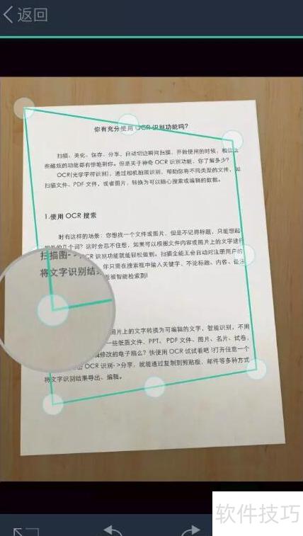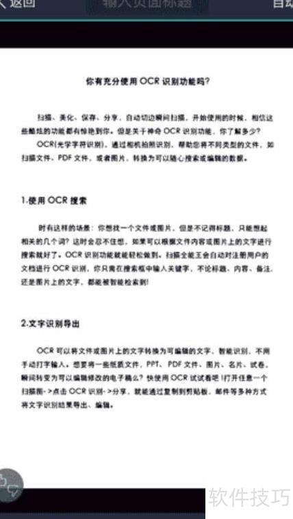 扫描完成后,点击底部OCR识别按钮,选择整页或局部识别范围,即可将图片中的文字快速转换为可编辑文本。