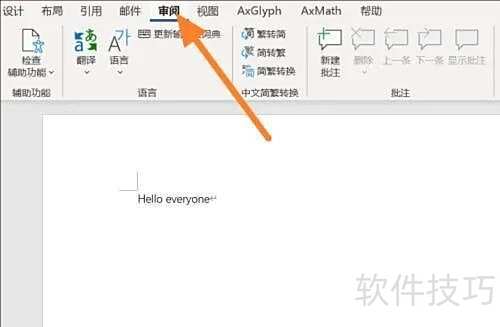 1、 进入Office365文档,点击顶部菜单的审阅选项。