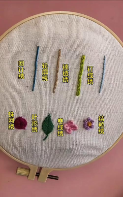 学会针法,是刺绣的核心,别担心,从最简单的学起,平针最基础,一上一下,形成线条,适合勾勒轮廓,回针也常用,针脚紧密,线条结实,常用于茎干,还有缎面绣,针脚平行排列,能填充色块,绣出饱满感,锁链绣像链条,一环扣一环,装饰性很强,法国结粒绣,能做出小圆点,点缀画面,特别可爱,慢慢练习,你就能掌握,多种针法了。