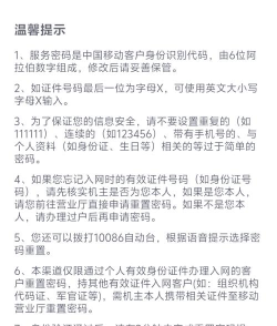 4、拨打客服电话修改还有一种传统方法,就是打客服电话,拨打10086、10010或10000,根据语音提示操作,转到人工服务,向客服说明要修改服务密码,客服会核对你的信息,比如身份证号、近期通话记录等,验证通过后,客服会帮你重置,或者引导你自行设置。