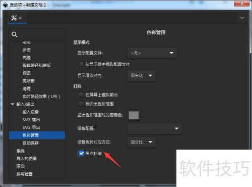 在Inkscape中,如需关闭黑点补偿,可进入文档属性,找到颜色管理选项,将黑点补偿设置为关闭即可完成调整。