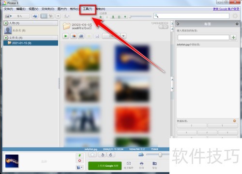 2、 在Picasa中,选择菜单栏里的工具选项。