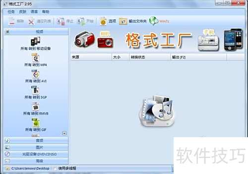2、 双击格式工厂图标,启动程序并进入主操作界面。