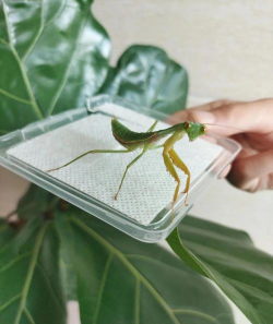 然后,静静观察一下,看看它在干嘛,是在等待猎物,还是在清理大刀,了解它的状态,再决定怎么抓,如果它正盯着你,就别贸然行动。