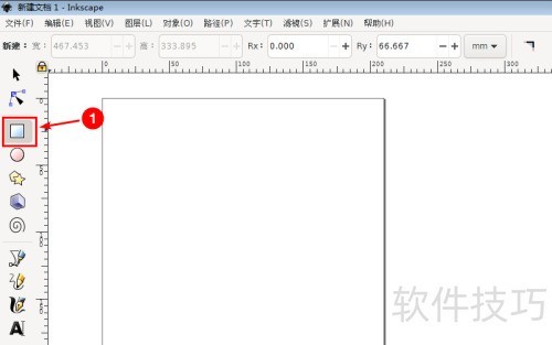 1、 启动Inkscape并新建文件,点击工具栏中的矩形绘制工具开始操作。
