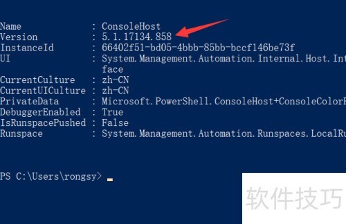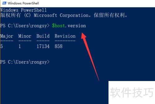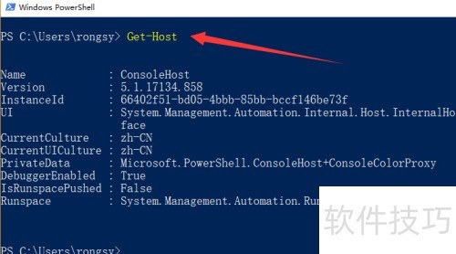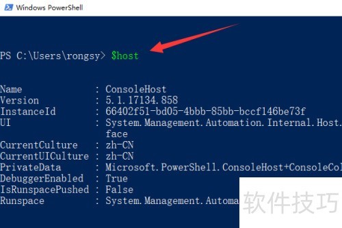 9、 输入Get-Host命令后按回车,即可查看版本信息。
