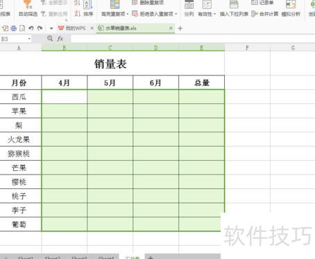 点击下方汇总表标签,用鼠标选中B3至E12区域内的数据。