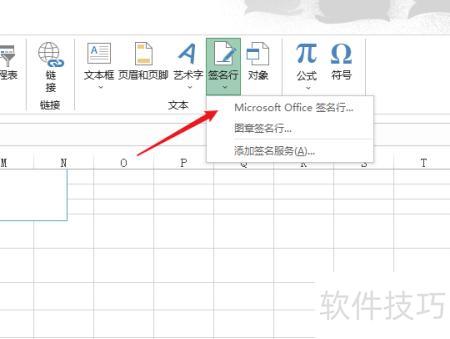 在文本区找到签名行,点击展开后选择Office 签名行即可。