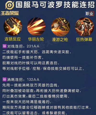 马克的一技能,是远程消耗,可以穿透小兵,所以,对线时用来清兵,或者消耗对手,都很不错,不过,要注意能量条,能量不足时,伤害会降低,二技能是位移,还能增加伤害,这是马克保命,和调整输出的关键,三技能是大招,可以进场打爆发,但也很容易,让自己陷入危险,所以,时机特别重要。