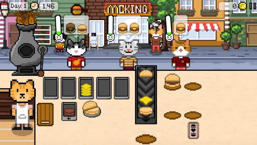 准备好在 Kitty Burger 度过宁静的一天了吗?为呼噜咕噜的顾客准备热腾腾的汉堡,小心翼翼地完成他们的订单,并在欢快的猫咪喋喋不休的陪伴下结束一天。Kitty Burger 是您一直在寻找的舒适猫科动物天堂,以逃避一天的压力。