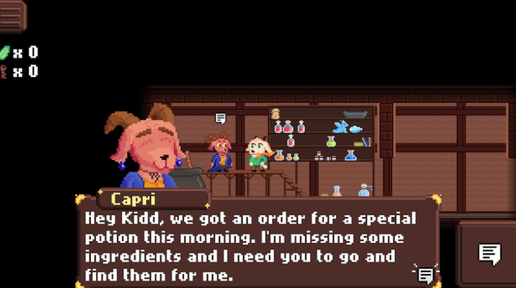 探索并收集药水成分,开启冒险之旅!扮演在药水店工作的小山羊基德。你的任务是为药水店收集一些稀有的药水原料。探索三个独特的关卡,寻找原料。