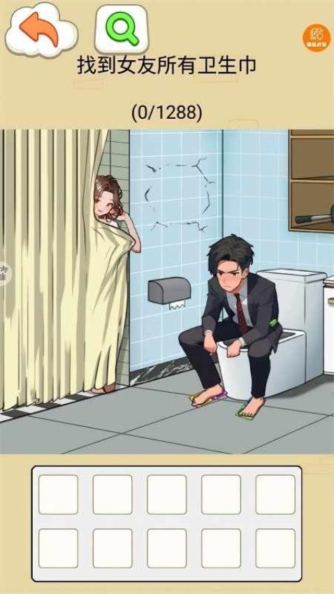 2、发挥你的脑洞,观察游戏画面的道具,拖动对应的道具就可以破解关卡