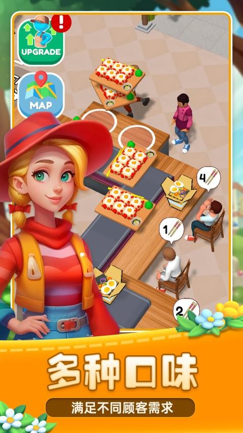 3、超多顾客逐步解锁,随着客流增加可以带来更加丰富的资金收入,灵活制作各式各样的菜品就能推进发展。