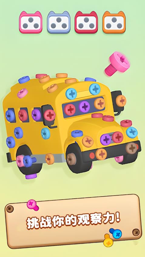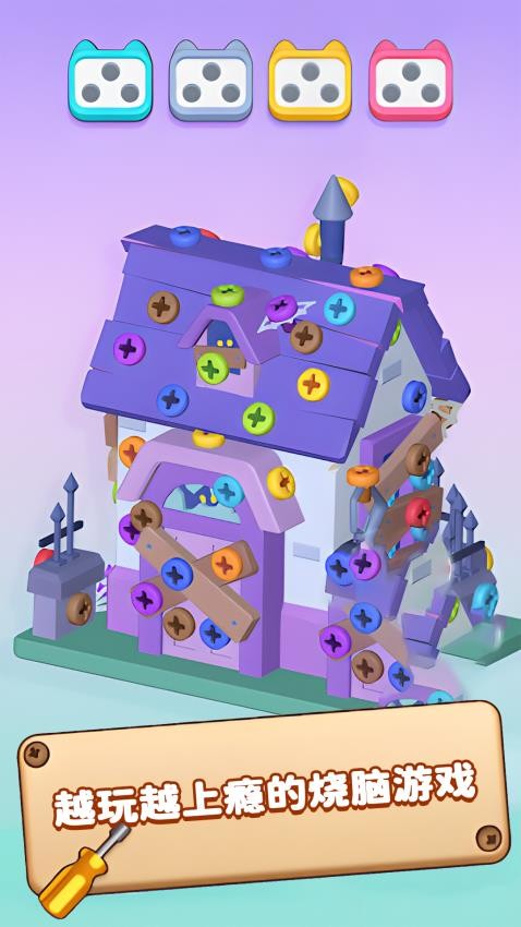 2、游戏中的螺丝非常多,提供多种颜色效果,可以按照颜色拆除螺丝
