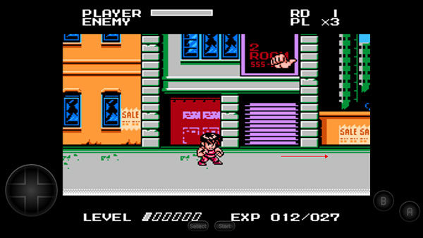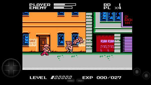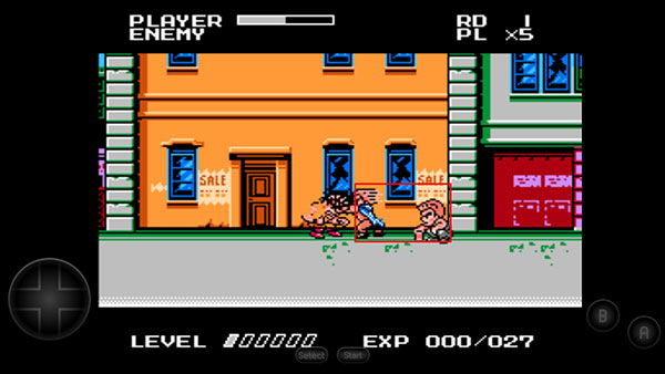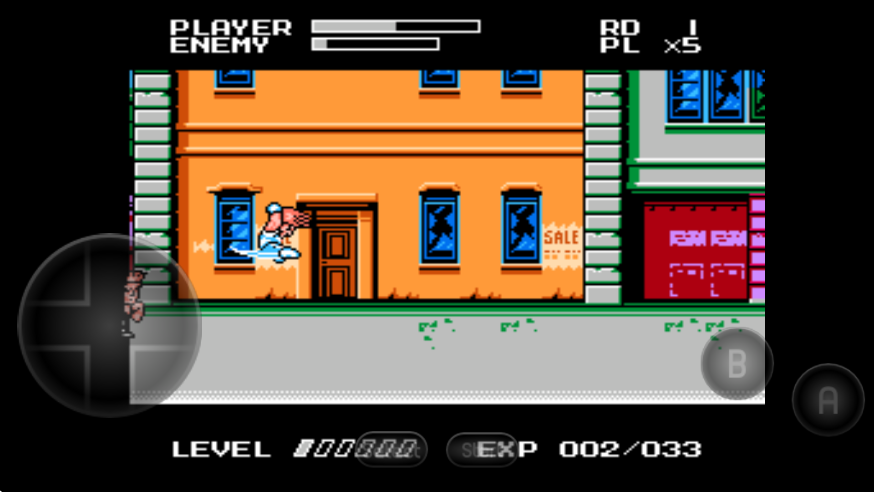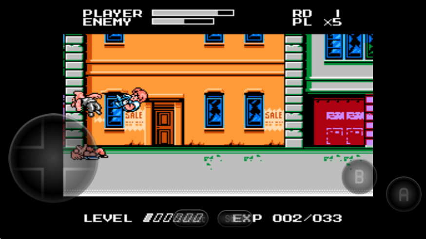 游戏采用Q版角色形象重塑经典,并引入升级机制。角色通过击败敌人积累经验值,逐步解锁必杀技。受FC硬件性能限制,同屏显示的敌兵数量有所减少,但保留了街机版的核心玩法:玩家可拾取食物恢复生命值,使用武器增强攻击效果。游戏场景涵盖街头、地铁等经典区域,每关结尾设有BOSS战。
