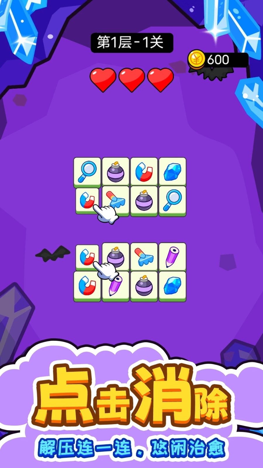 闯关连连看是一款好玩有趣的休闲消除游戏。在闯关过程中你还会发现许多有关的连接方式,将两个相同的物品连接起来,即可得到消除优势,关注具体的限定规则和要求,玩家便可很快找到更为重要的机会,还能逐渐收获一些有利的关联条件。这里汇集了大量的挑战关卡,连连看这样的玩法可让人得到更多的快乐,成功处理各个有关的题目,还能收获到关键奖励。观察整体布局的时候,你可快速确定有关的信息,这样即可很快掌控具体的优势,突破更多有关的挑战环节,获得关卡的胜利。如果你也对这款游戏感兴趣的话,不妨来试玩吧!