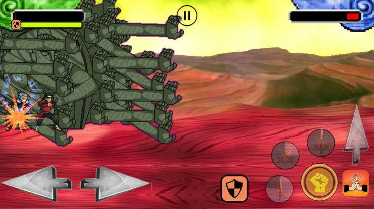 火影忍者梦幻之战游戏(Ninja Mugen)是根据火影忍者改编而来的2D动作战斗游戏。游戏里玩家可以使用各种火影里的角色,甚至是他们的各种时期和形态,比如少年时期的鸣人和成年后的他,以及万花筒佐助和幼年时期的佐助等,对应的游戏里玩家也可以使用他们的忍术进行战斗。游戏里战斗的场景是非常多的,全部来自于火影动漫里的经典场景!