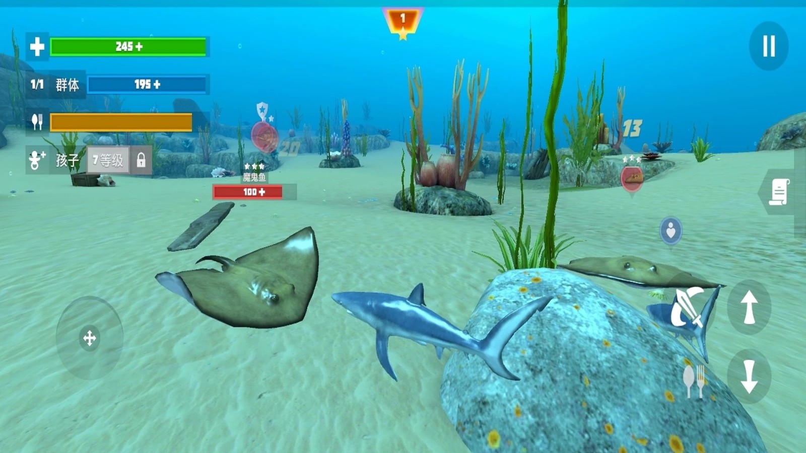 鲨鱼模拟器是一款以进化为主题设计的休闲冒险生存游戏。在这个弱肉强食的海洋世界中,你需帮助鲨鱼攻击更多的鱼类,即可得到生存成长机会,只有变强才能成为海洋霸主。逐步确定每个鱼类的等级情况,只有找到等级较低的鱼类才能得到便捷的攻击效果,轻松吞噬它们获得更多能量。解锁相关等级之后你便可获得绝佳的优势效果,还能逐步发现适合的关联选择,能够得到极其重要的挑战机会,还能持续收获各个有关的惊喜,玩家也能快速解决不同的问题,获得最佳的生存方法。如果你也对这款游戏感兴趣的话,赶快来试玩体验吧!