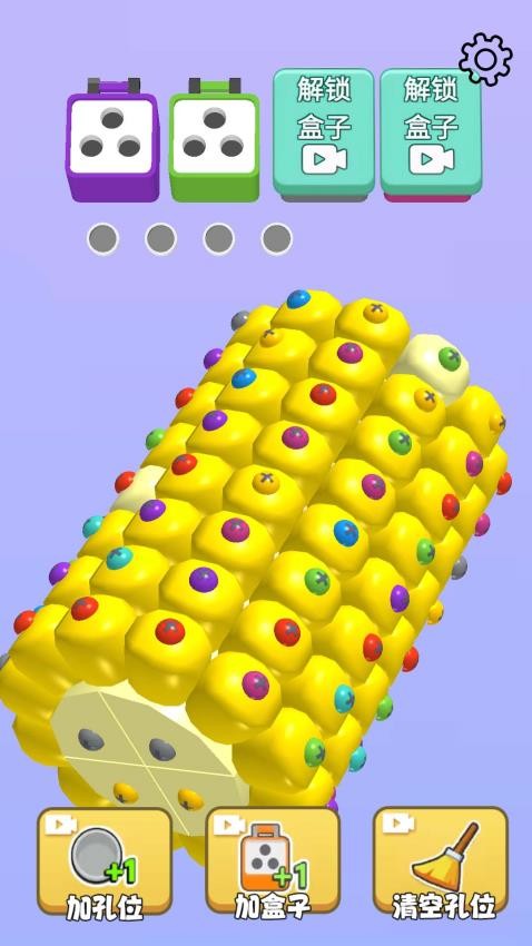 2、玉米拆螺丝玩法,玉米显示很多螺丝,需要查看顶部盒子的颜色,点击对应颜色的螺丝拆除