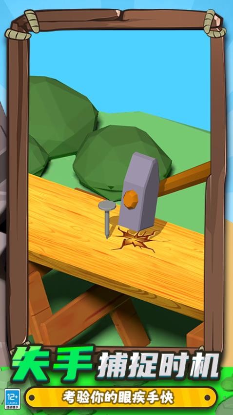 玩家需在限定时间内完成敲钉子、劈木块、爆破障碍等挑战,精准操作是关键。游戏场景丰富,包含各种趣味模式,搭配动态陷阱与炸弹危机,考验你的手眼协调!通过闯关收集星星,解锁更多工具与炫酷武器,体验不断突破自我的成就感。碎片化时间轻松上手,享受快节奏闯关乐趣!