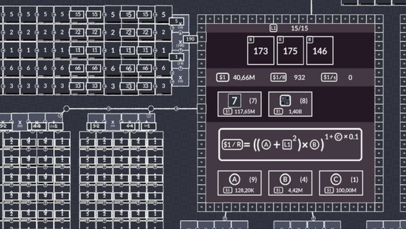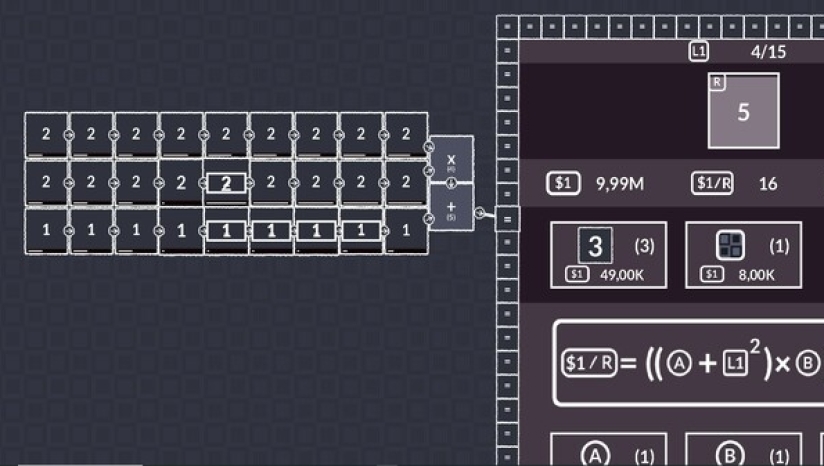 《Node Math》是一款休闲策略类挂机游戏,核心玩法围绕数学运算与自动化生产展开,玩家通过组合数字和运算符赚取资源,逐步解锁新功能并达成目标。