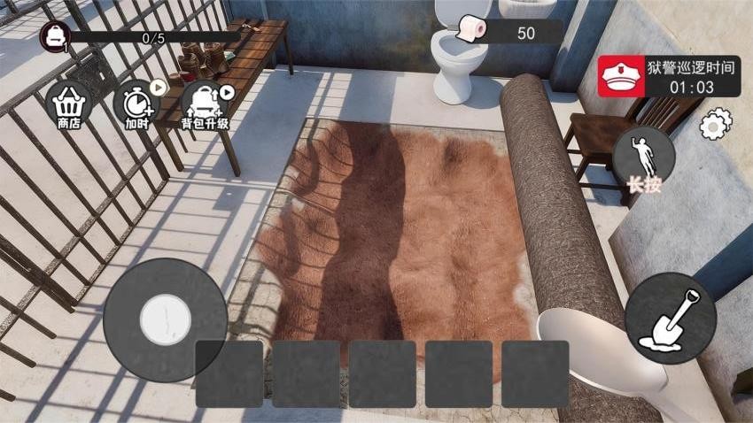 越狱求生模拟是一款玩法新奇的监狱冒险逃生游戏。游戏中玩家的核心目标便是逃离这座戒备森严的监狱,通过挖掘和探索的方式开辟出一条通道完成逃离,整条通道的挖掘需要悄悄进行,被巡逻守卫发现异常就会直接失败,充分掌握守卫的巡逻路线和规律才能维持隐蔽性和安全,所以在开挖之前需要打探所有的情报信息,成功获取情报才能顺利完成各项挑战。越狱计划全面安排,逃脱的时间也要谨慎选择,时间的错误规划也会导致被提前发现踪迹,这会大大降低整体评价和逃生概率,营造出极其紧迫的氛围进行挑战。