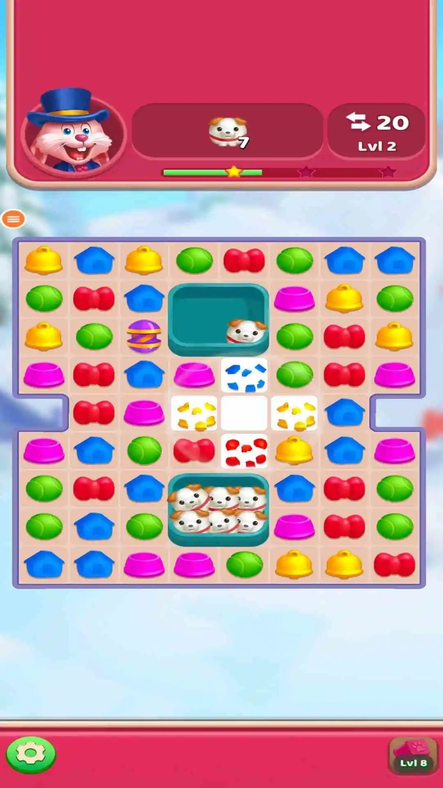 在关卡中你需确定收集狗狗的目标数量,才能在挑战中收获特殊的关联选择。